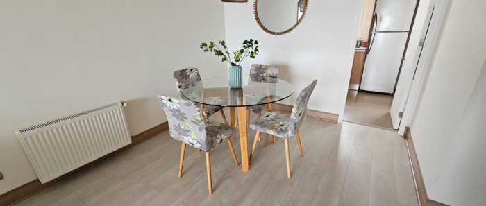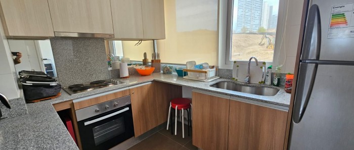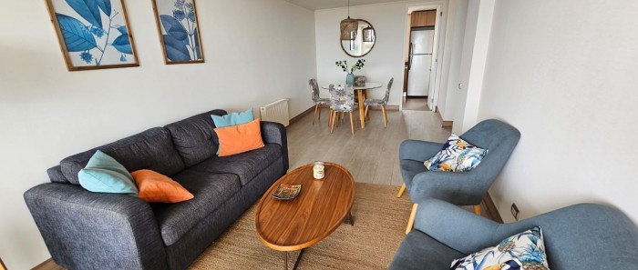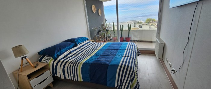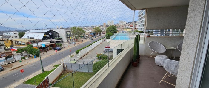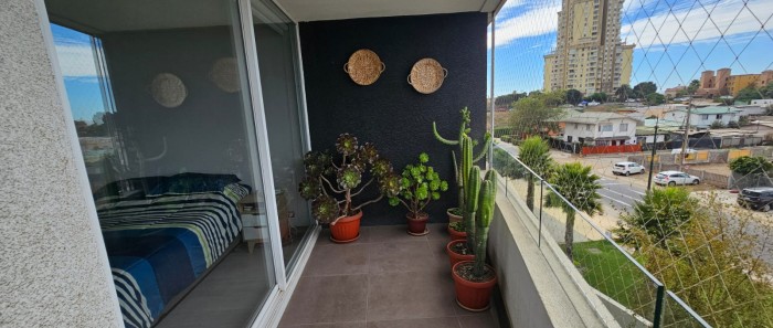 Hermoso departamento, prácticamente nuevo, cuenta con 3 dormitorios y 2 baños, amplio living comedor, cocina cerrada con loggia, excelente terminaciones, ventanas termo de panel, cuenta con estacionamiento cubierto y bodega, el edificio cuenta con piscina, gym, sala multiusos, quinco, lavandería, GC:$165.000 app