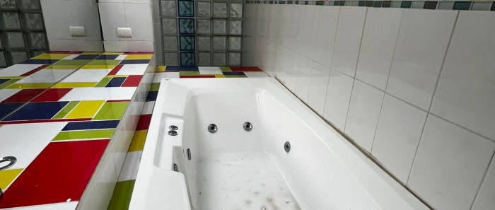 •Baño doble (2 WC + 2 duchas + 2 lavamanos) con tina de hidromasaje y baño simple.