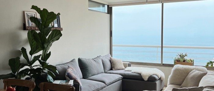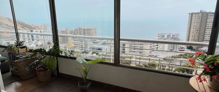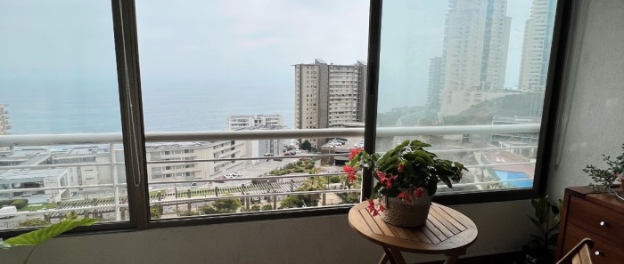 Precioso departamento, panorámica vista al mar, sector Costa de Montemar, cuenta con 2 dormitorios y 2 baños, cocina americana, amplia terraza cerrada, instalación para lavadora, 1 estacionamiento. El edificio cuenta con: Piscina exterior, Piscina Temperada, Gimnasio, Sala de Eventos, Quincho. Gastos comunes: $140.000 aprox.